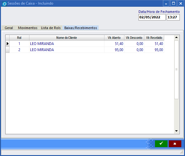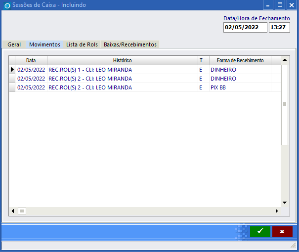 2– Movimentos: Relaciona todas as movimentações que compõem o Caixa que está sendo fechado.