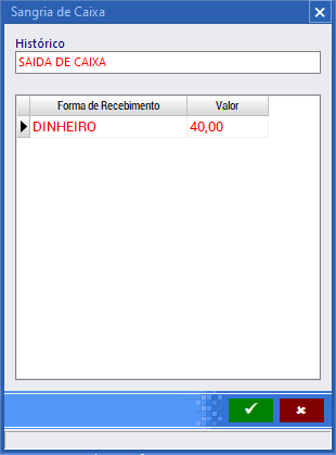 Basta digitar um Histórico para a Sangria e informar o valor que está sendo retirado do Caixa Balcão.