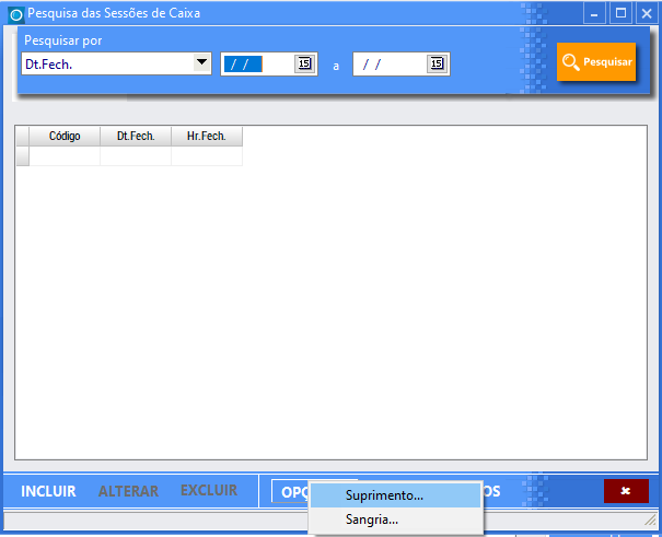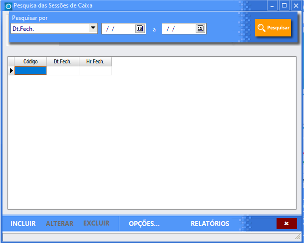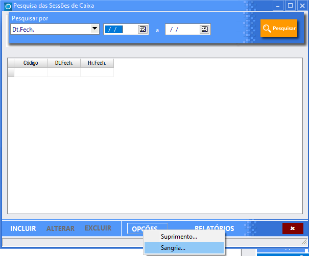 Será gerado um registro de sessão de caixa, que será mostrado na tela de pesquisa.