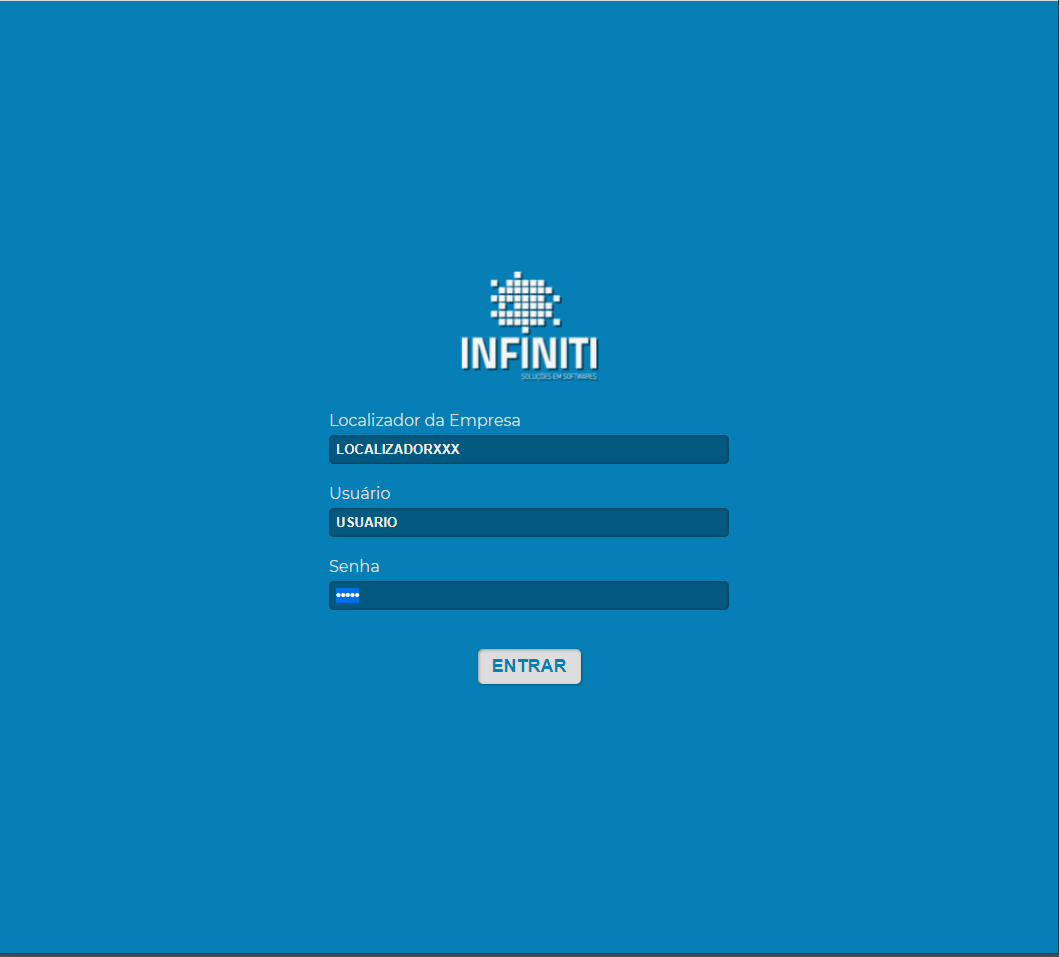 Para se conectar ao INFINITI B2b, digite o LOCALIZADOR, USUÁRIO e SENHA, e clique no botão ENTRAR.