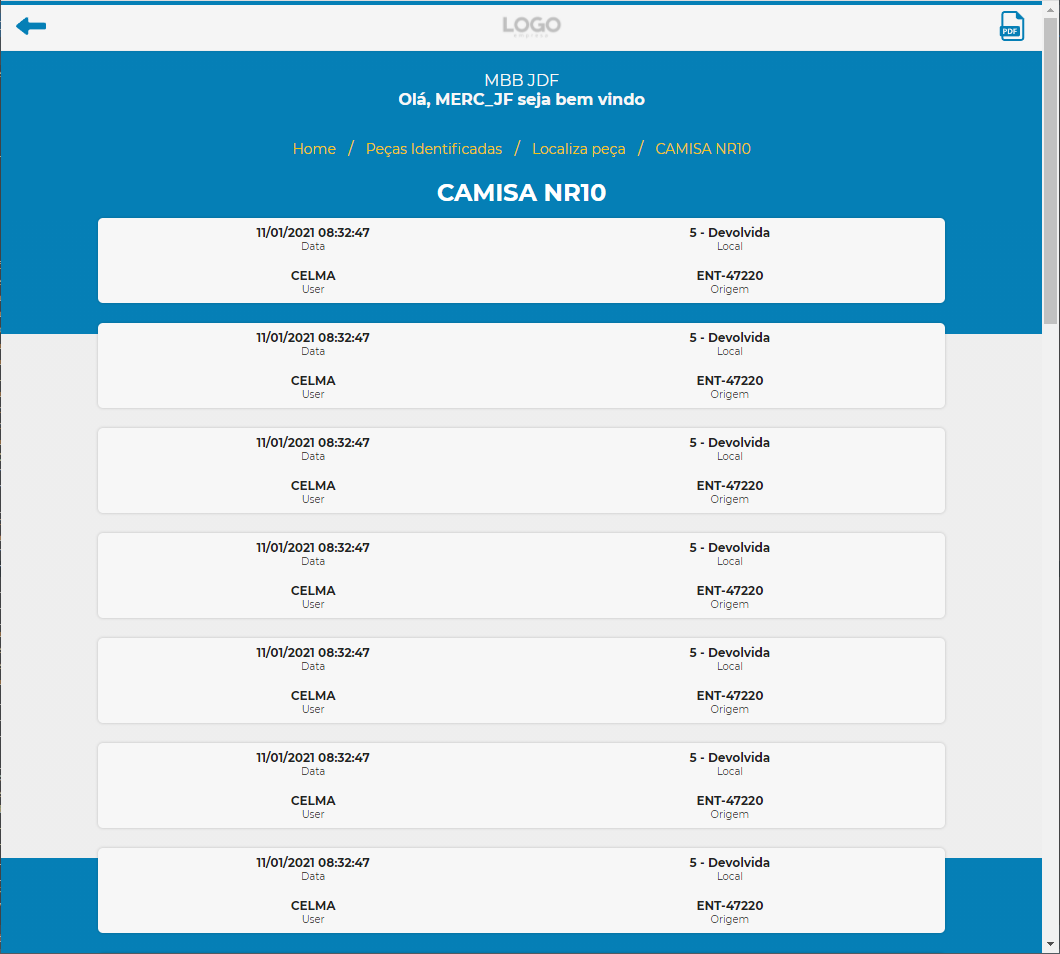 Além disso, para lavanderias que utilizam identificação por código de barras, o cliente consegue fazer a gestão de sua rouparia, controlando as movimentações internas das peças.