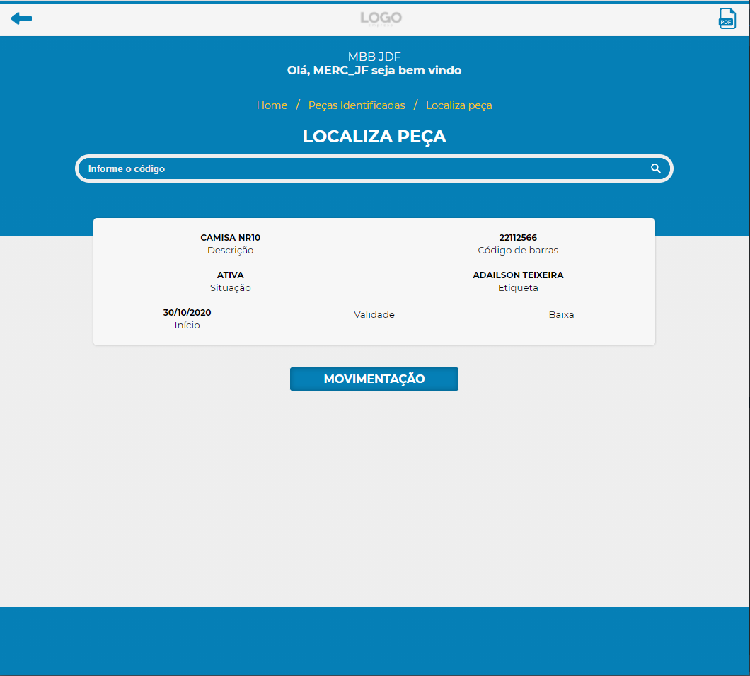 Após consultar a peça desejada, podemos clicar no botão de MOVIMENTAÇÃO, que nos apresentará...