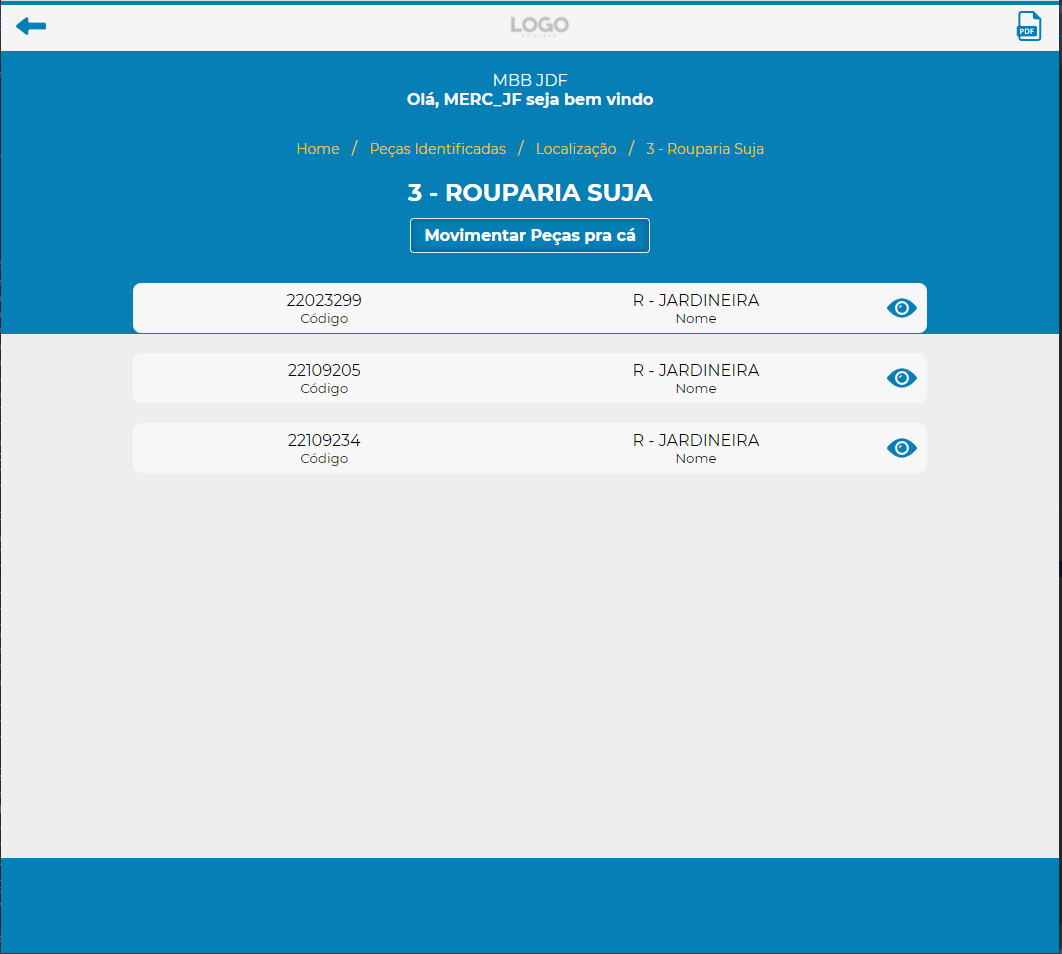 3 – Rouparia Suja – Após o funcionário usar as peças, elas podem ser bipadas pela empresa, enviando-as para este local.